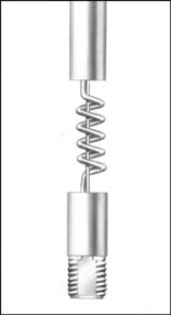 - Released force of drive spring accelerates arcing rod upward, causing rapid elongation of the arc in the solid-material-lined bore. Under high-fault conditions, heat from confined arc causes solid material in the large-diameter lower section of the arc-extinguishing chamber to undergo thermal reaction, generating turbulent gases and effectively enlarging the bore diameter so that the arc energy is released with a mild exhaust. Under low-to-moderate-fault conditions, arc is extinguished in the small-diameter upper section of the arc-extinguishing chamber, where deionizing gases are effectively concentrated for efficient arc extinction.