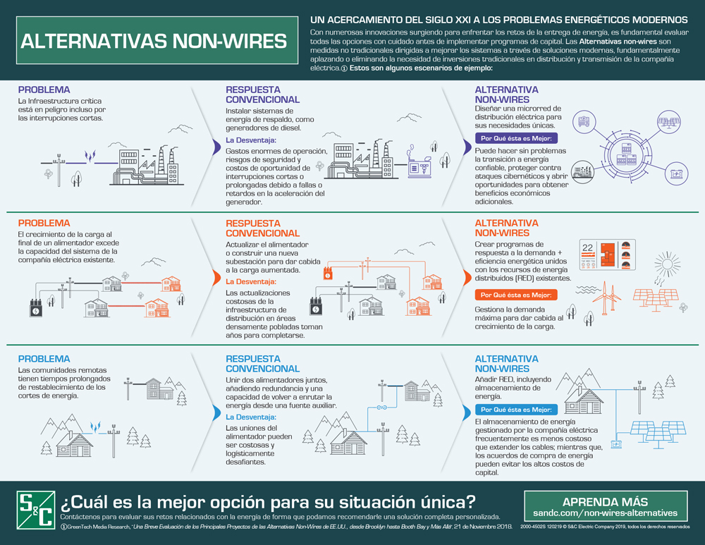 Las microrredes son una sofisticada solución alternativa de “non-wires” que se aplica mejor en áreas que requieren un alto nivel de resistencia, calidad de la electricidad y confiabilidad. S&C es un integrador de microrredes comprobado que ofrece una solución completa, desde controles hasta comunicaciones y hardware.